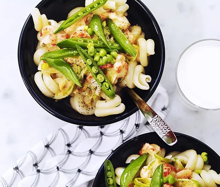 Krämig kräftpasta med salladsärter