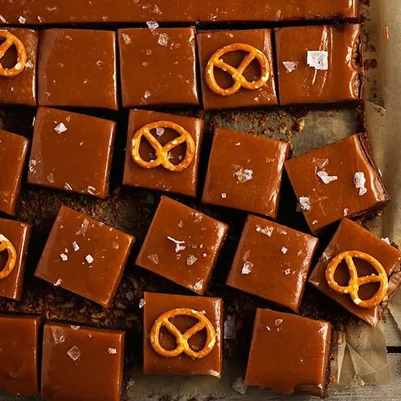 Kladdkaka med knäcktäcke och salta pretzels