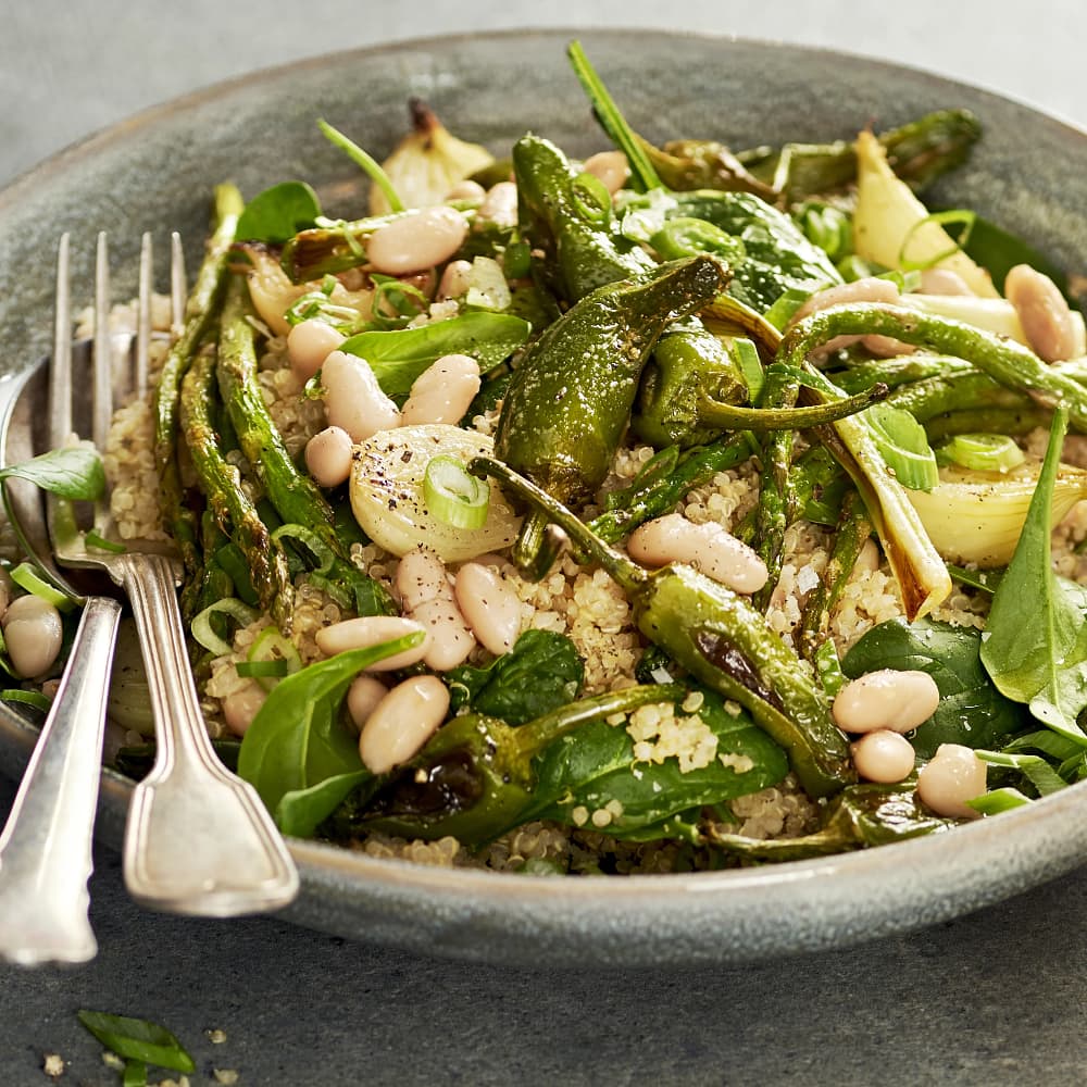 Quinoasallad med sparris och salsa romesco