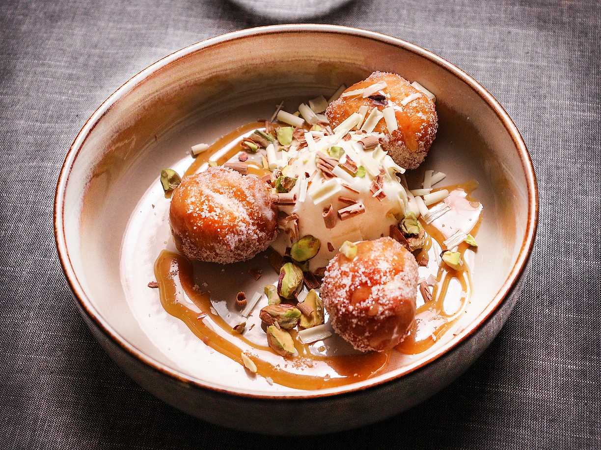 Äppelpizza med vaniljglass och hemgjord salt kolasås