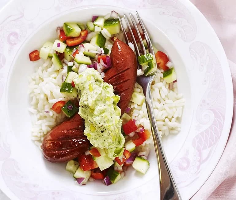 Sremska med avokadoröra och salsa
