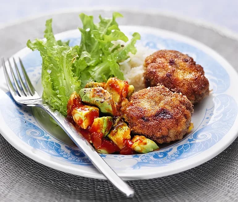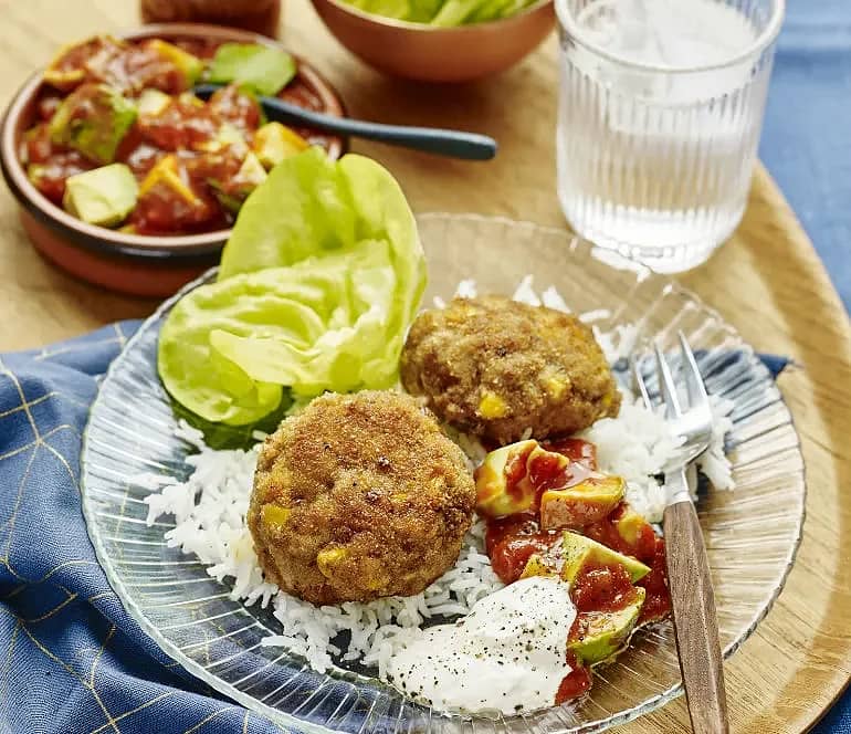 Krispiga majsbiffar med salsa och avokado