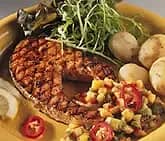 Grillad svärdfisk med Passion Island salsa och rostad sötpotatis
