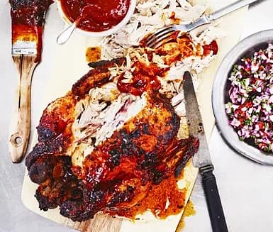 Helgrillad kyckling med polenta och salsa
