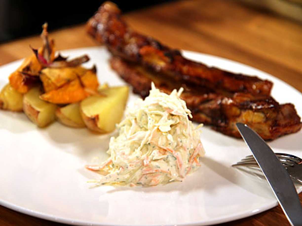 Helgrillad rapskarré med salt parmesankräm