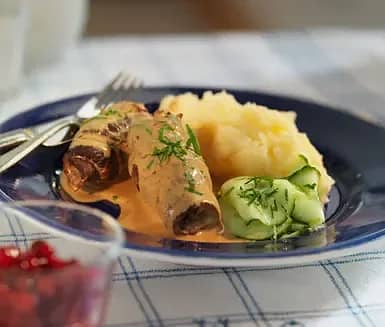 Oxrulader med gräddsås