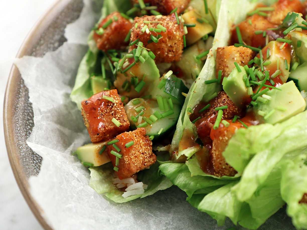 Färsspett i salladsblad med asiatisk sås