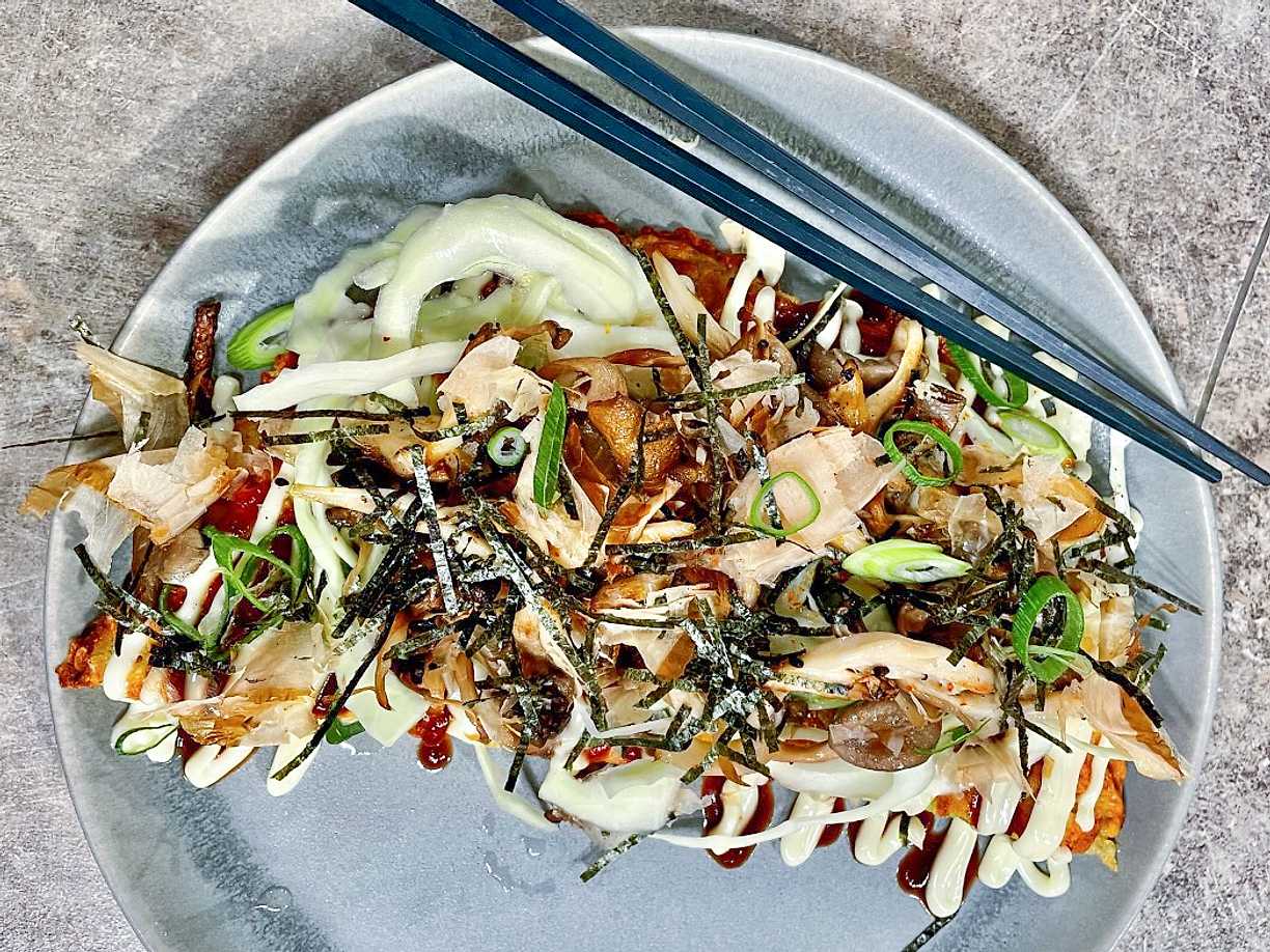 Okonomiyaki med tonkatsusås