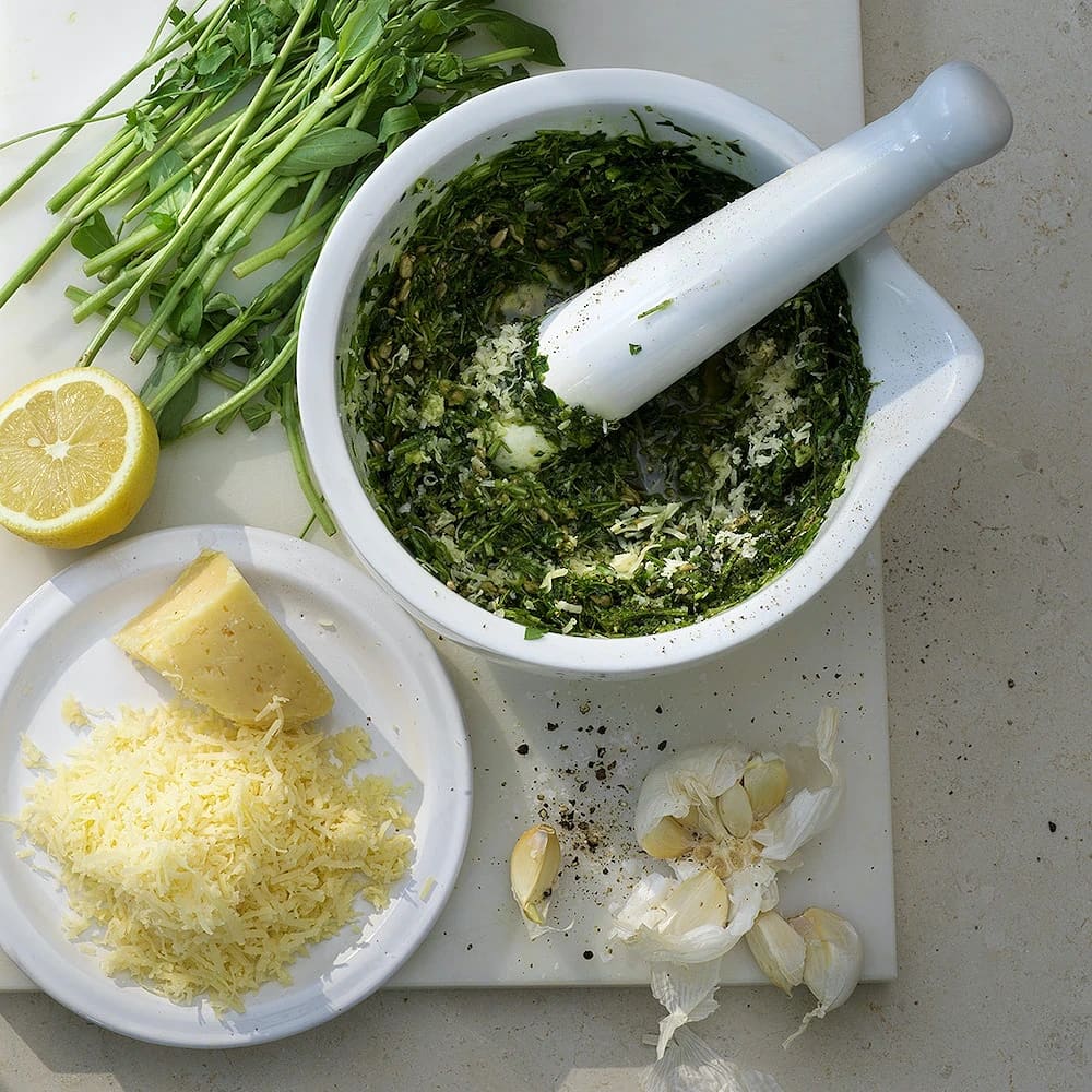 Ruccola- och basilikapesto