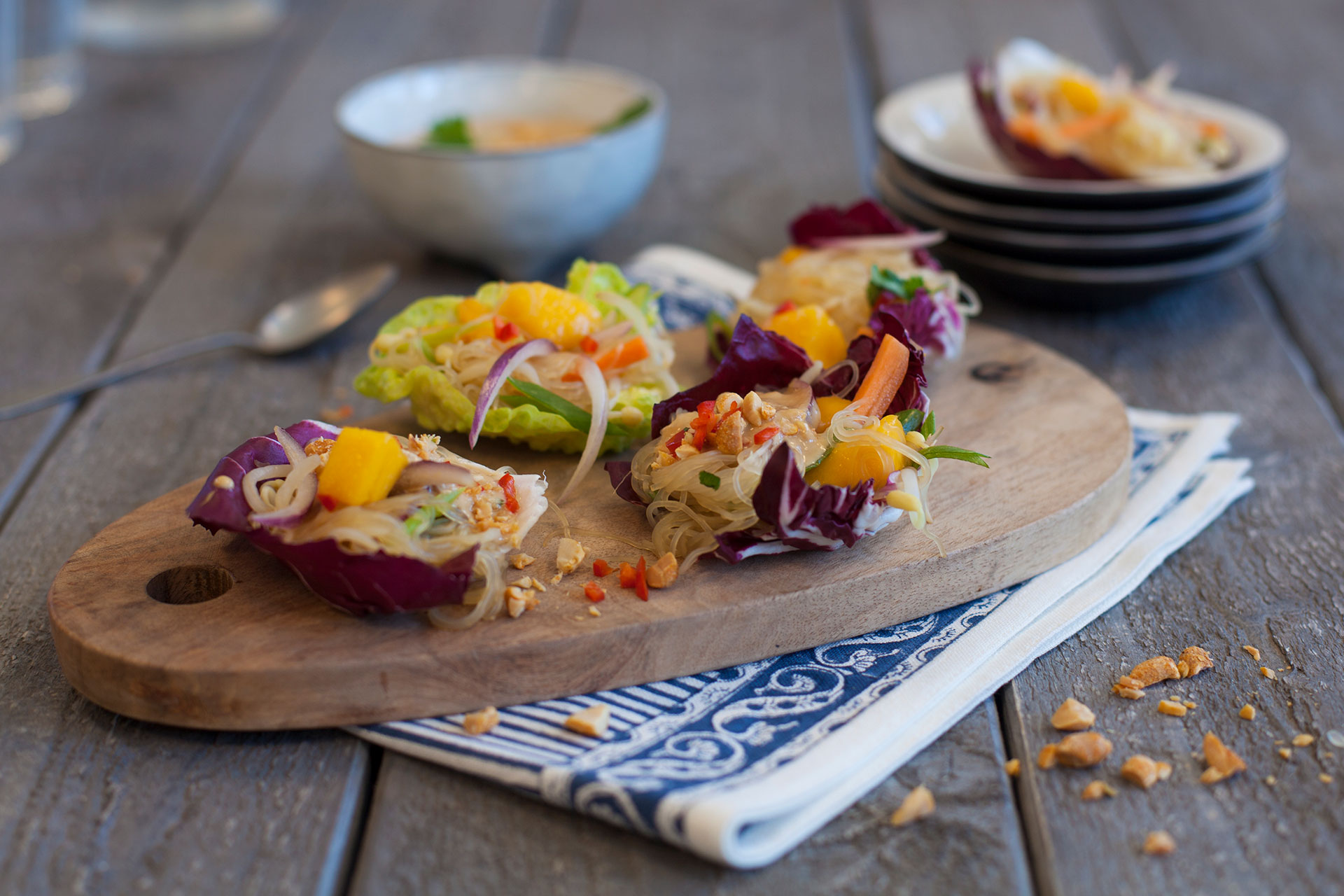 Nudelknyten med jordnötsdressing