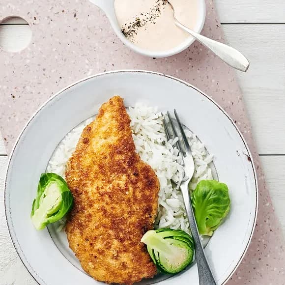 Kycklingschnitzel med rosa sås