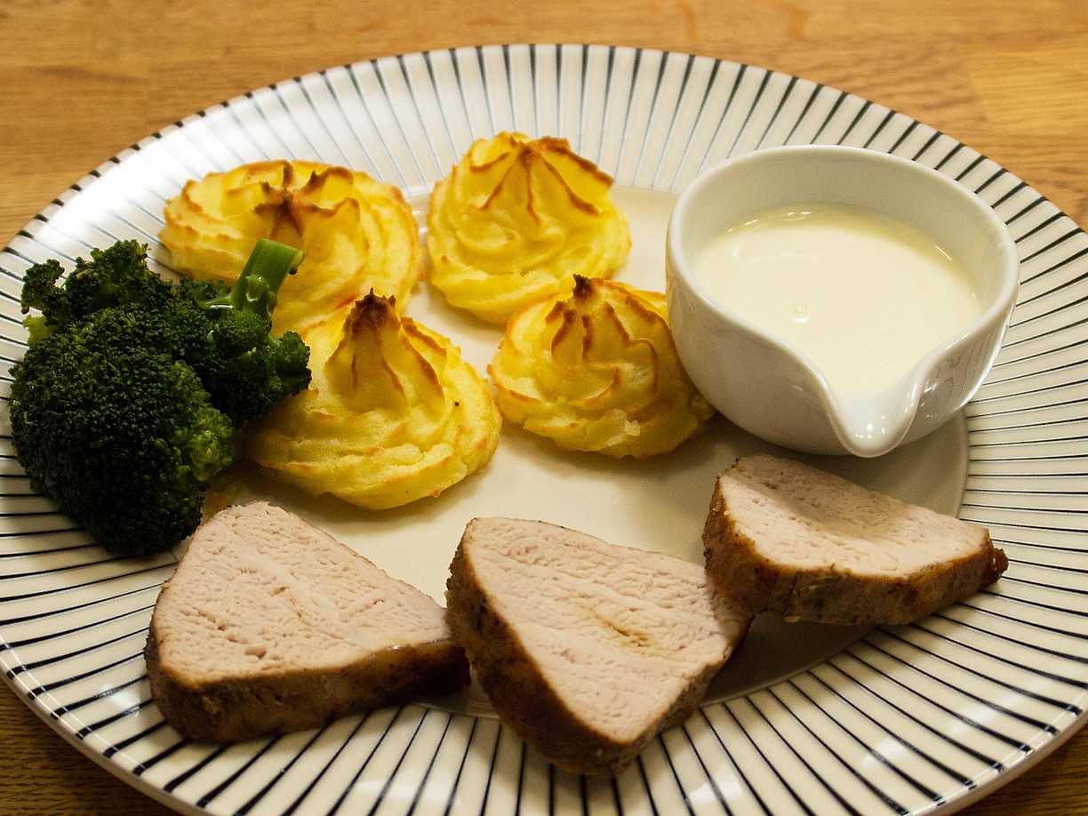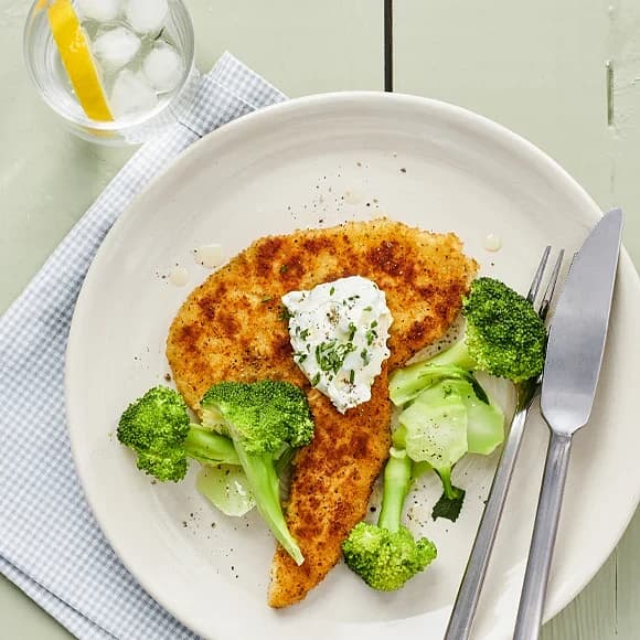 Krispig fläskytterfilé med sötsur sås och gurksallad