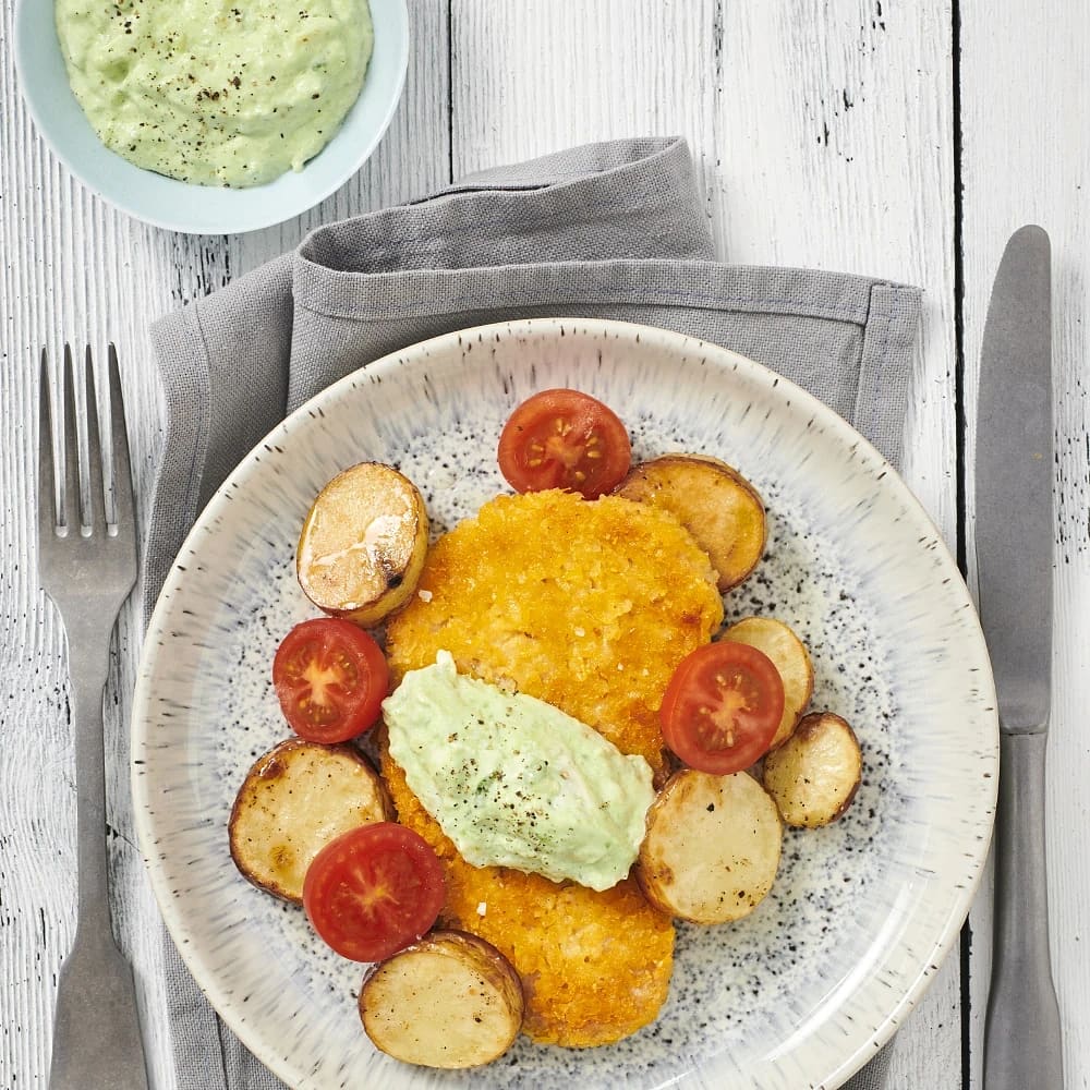 Krispig schnitzel med avokadodipp