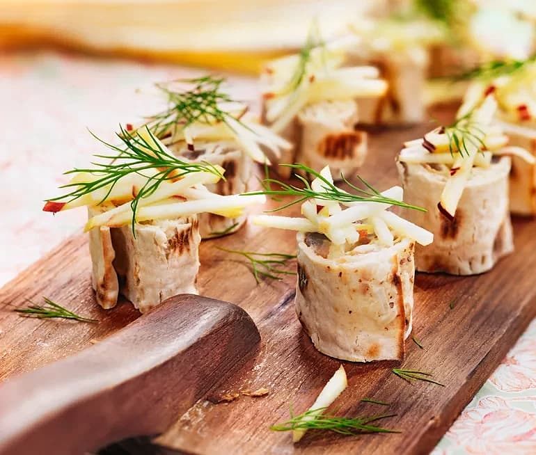 Julskinkesnittar på vörtbröd med senapskräm och grönkål