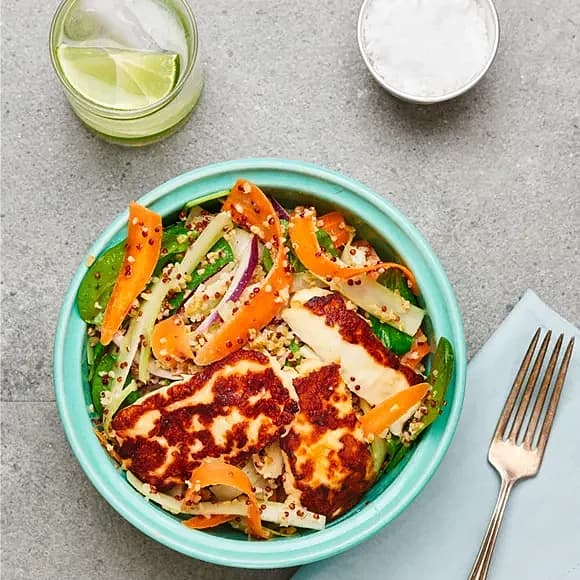 Grynsallad med halloumi och senapsvinägrett