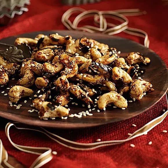 Rostade nötter smaksatta med wasabi, sesam och honung