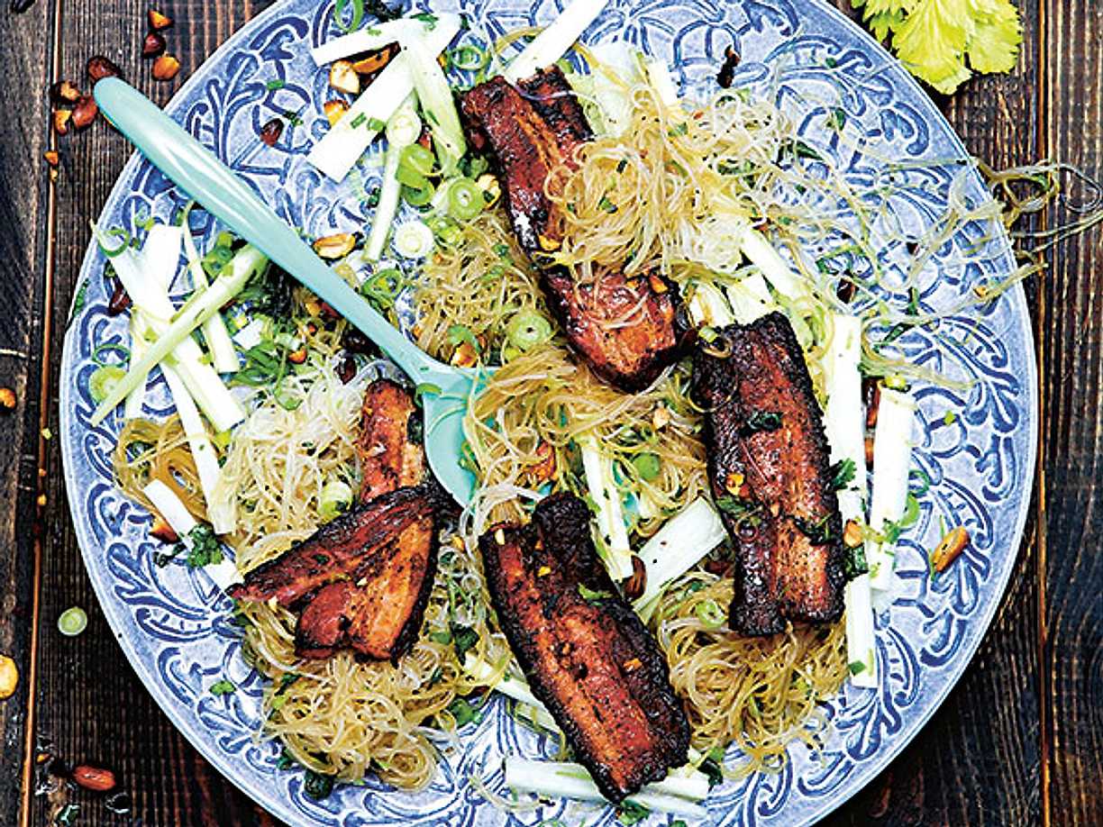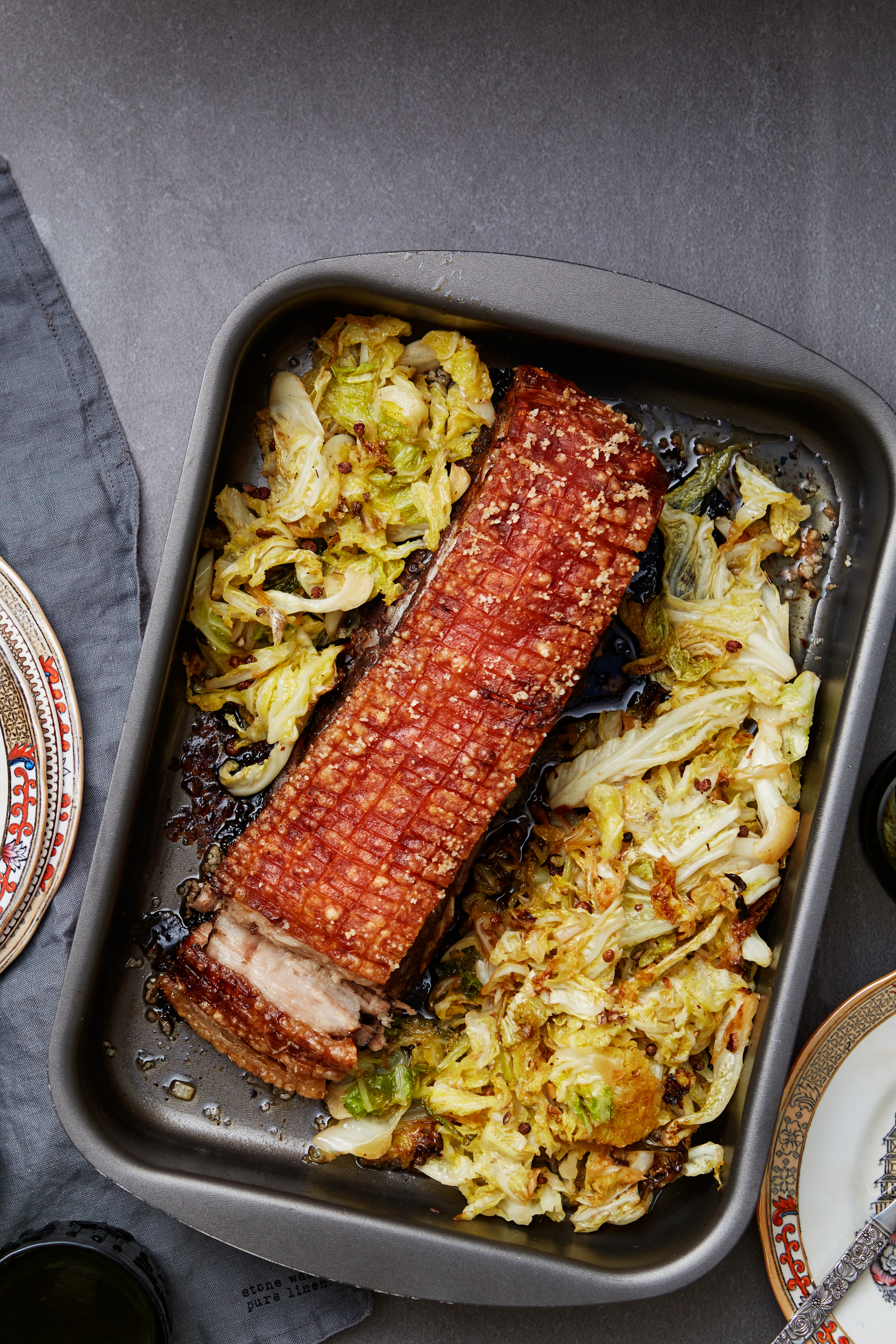 Ugnsstekt sidfläsk med lingongräddfilssås