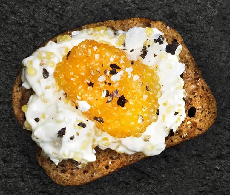 Tilltugg med färskost toppad med sikrom