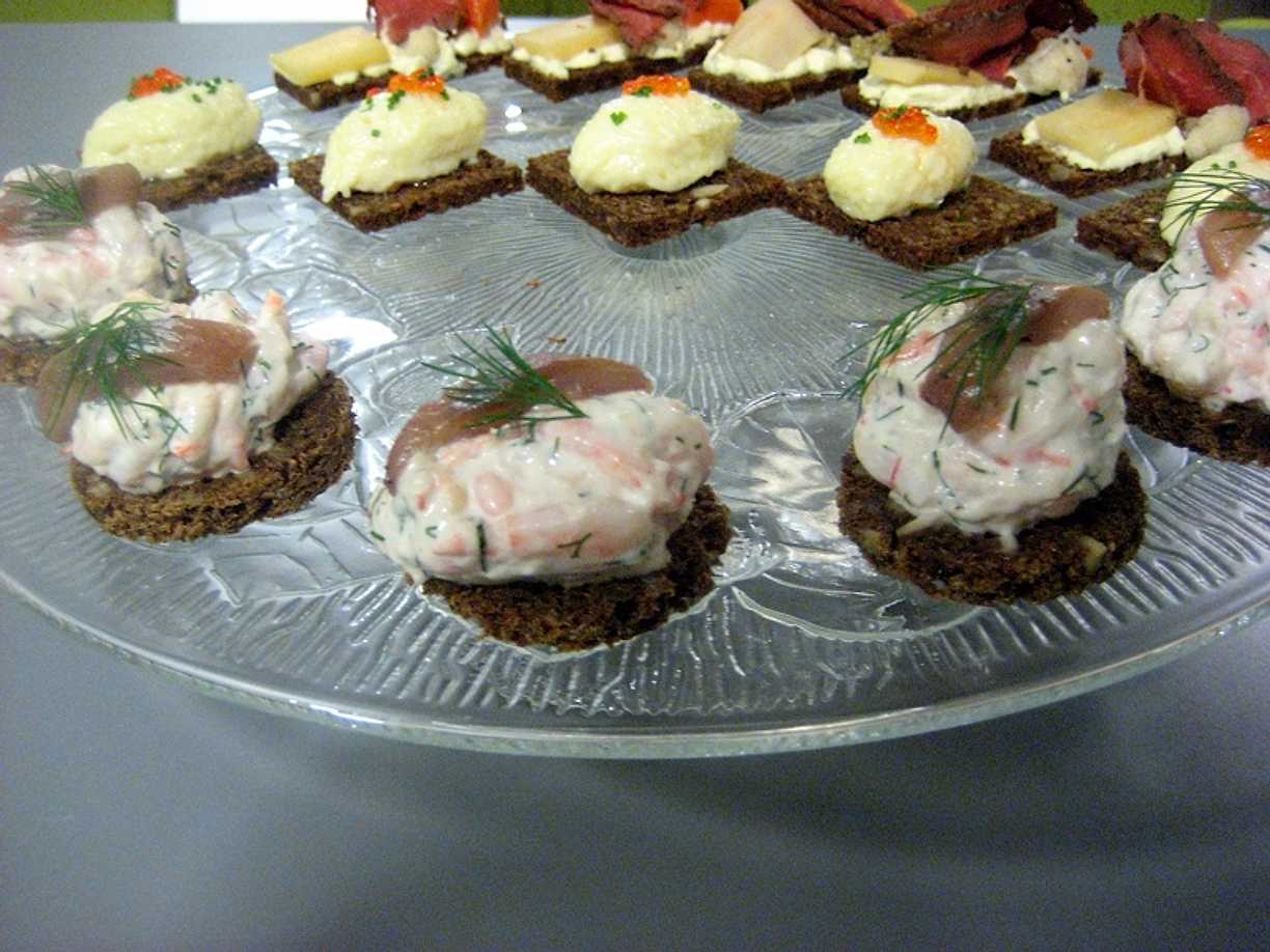 Smörgåsbakelse med skagenröra och lax