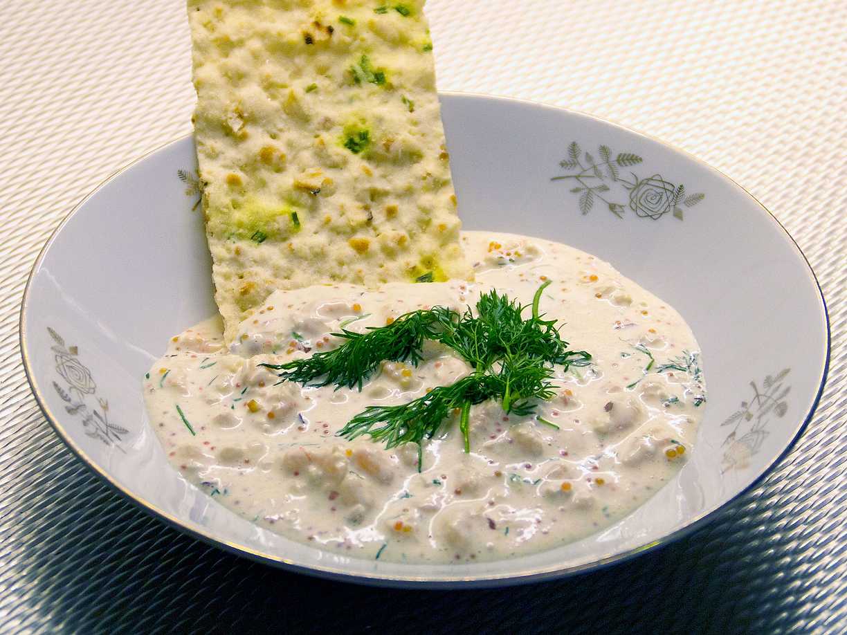 Hemgjord skagenröra med tunnbrödschips