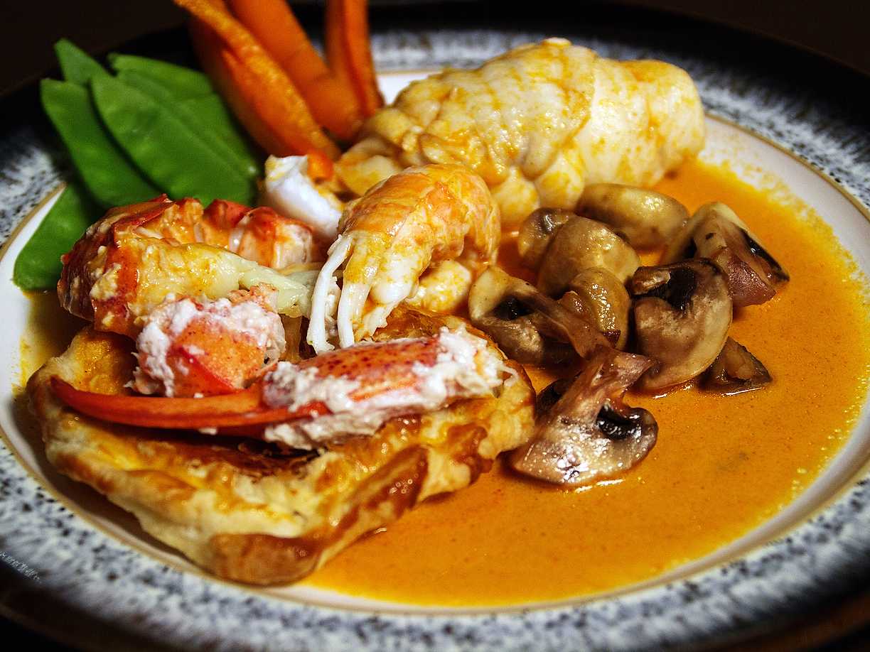 Rödtunga i skaldjurssås med finbesök av hummer och kräfta