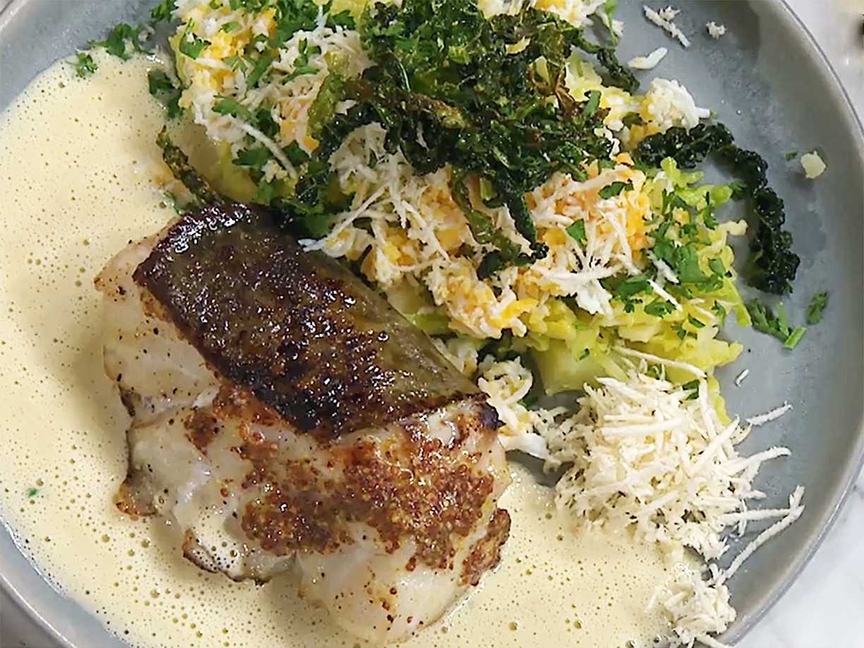 Glasbakad skrei med kålrotssmörsås