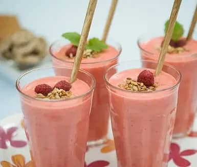 Smoothie med cottage cheese och hallon