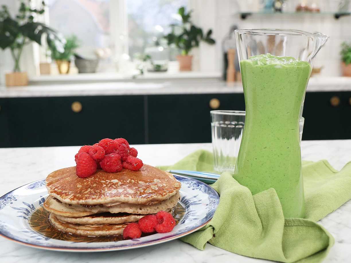 Chiapannkakor med grön smoothie