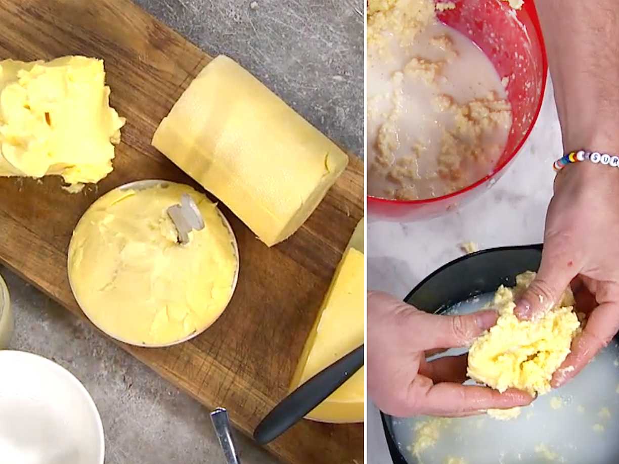 Chèvre- och parmesanfylld pasta med brynt smör och rödbetor