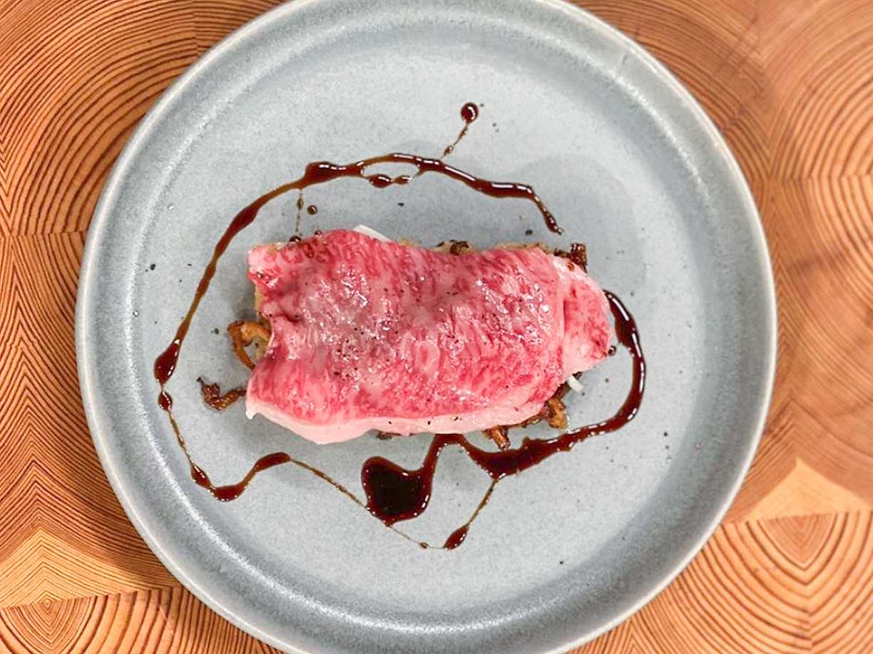 Kantarell ”toast” med japansk wagyubiff