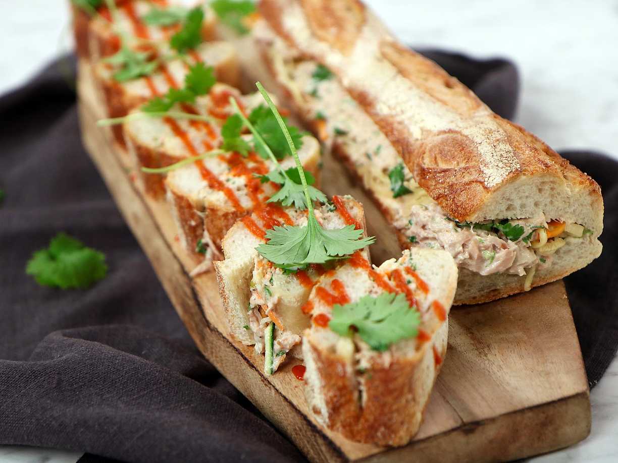 Baguette med tonfisk, ägg, kapris och oliver