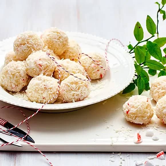 Snöbollar av vit choklad och mint