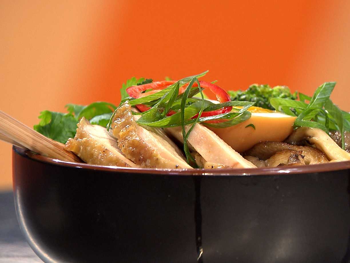 Kyckling”ramen” med pekingägg, sobanudlar och svampbuljong