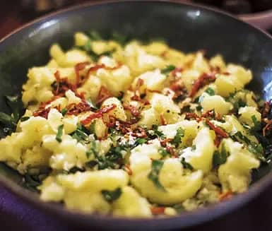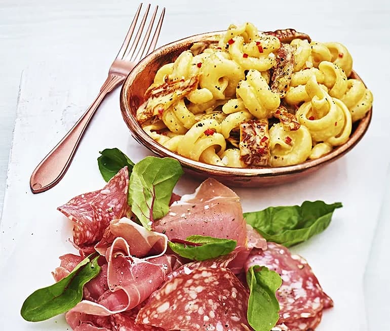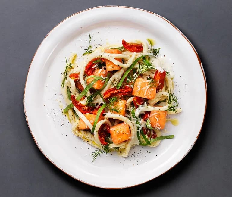 Krämig bucatini med lax, blomkål och soltorkade tomater