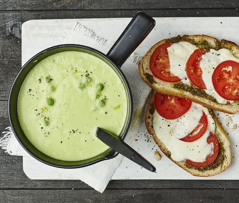Grönärtsoppa med mozzarellatoast
