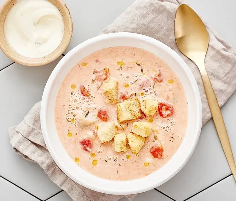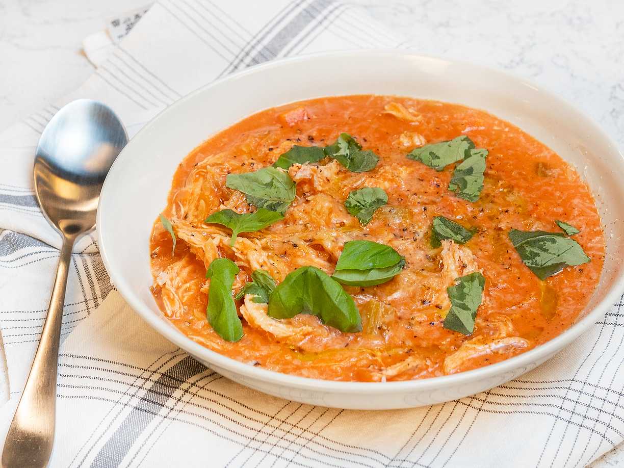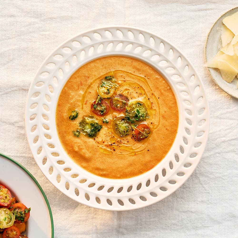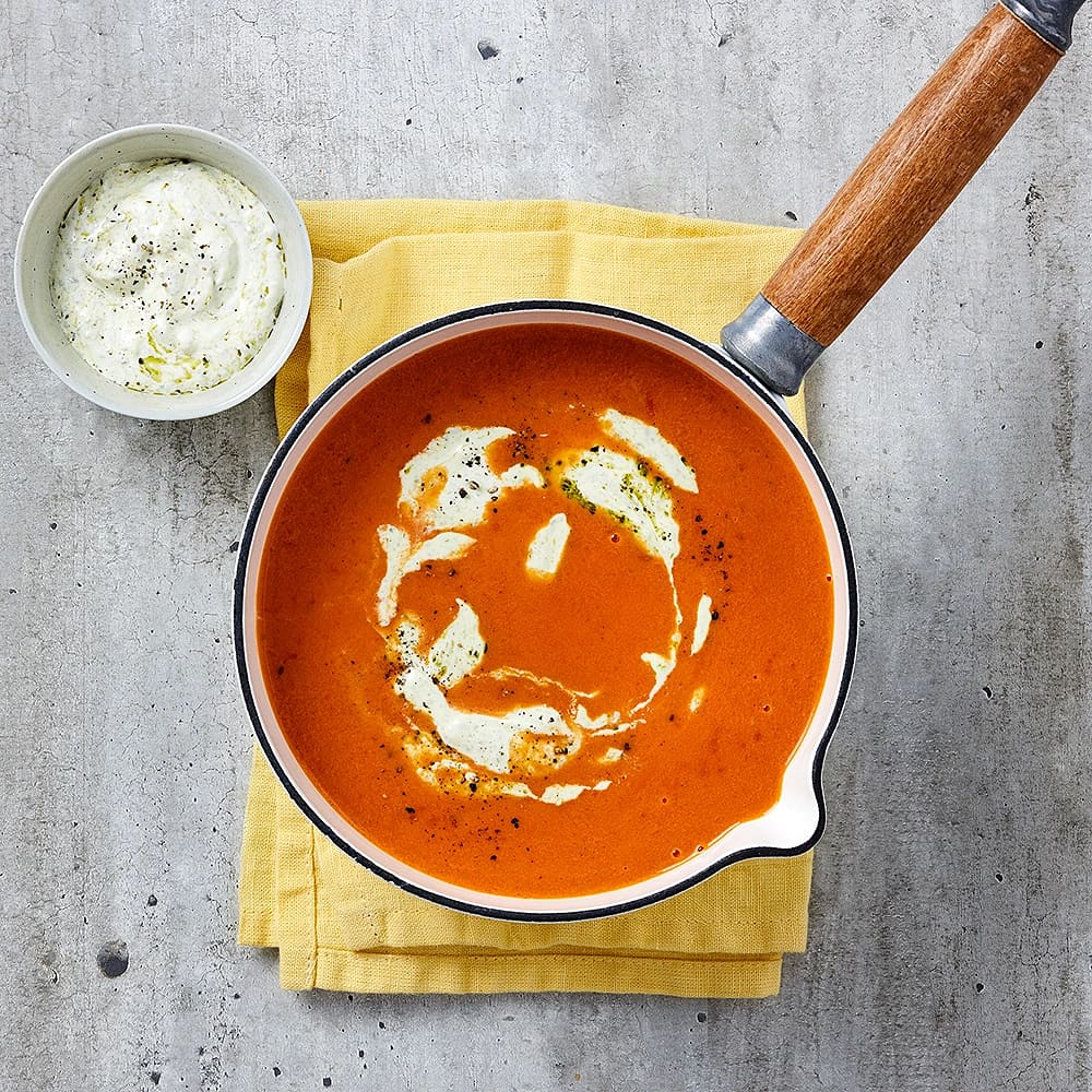 Tomatsoppa med basilikacrème