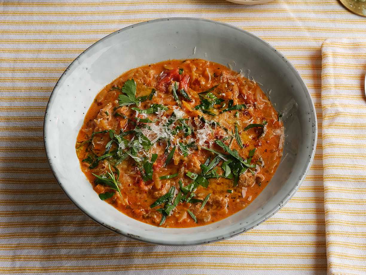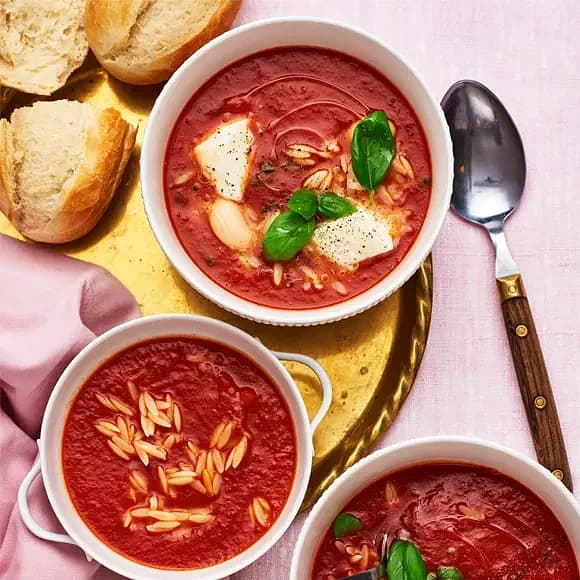 Tomatsoppa med risoni och mozzarella