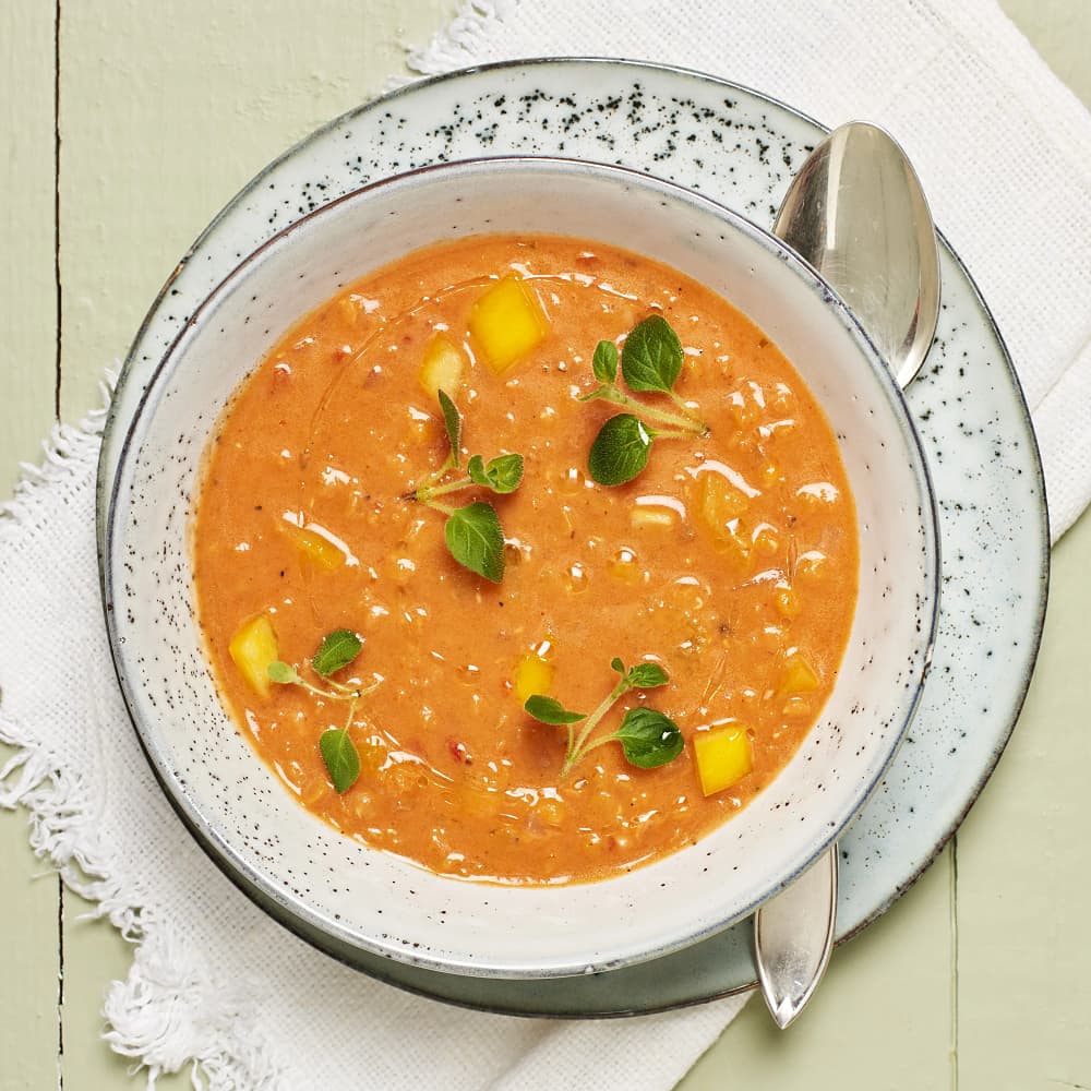 Röd linssoppa med kokos och tomat
