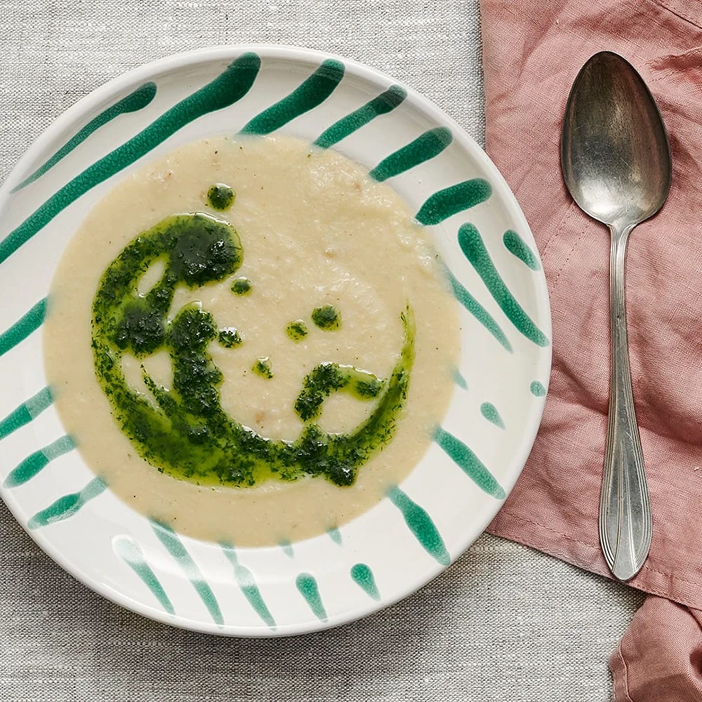 Jordärtskockssoppa med potatis och örtdressing