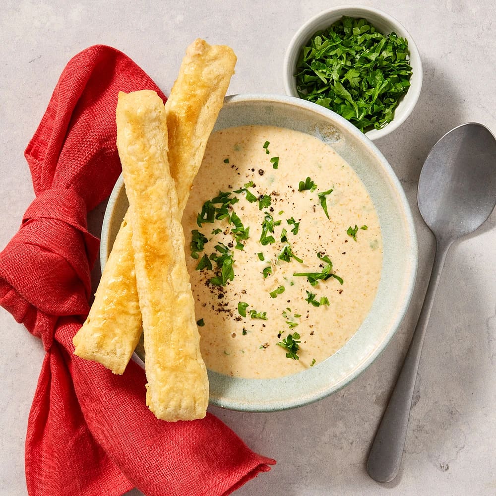 Potatis- och purjolökssoppa med grissini