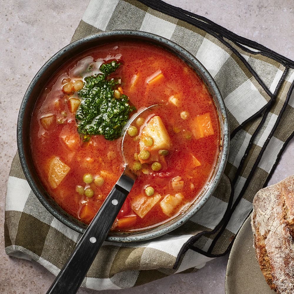 Lins- och potatissoppa med persiljesalsa