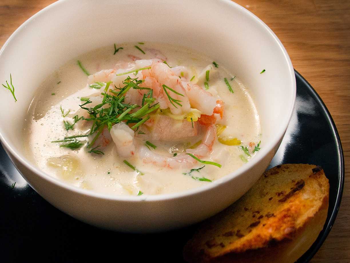 Flickornas fisksoppa med lax och kräftstjärtar