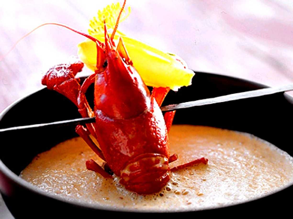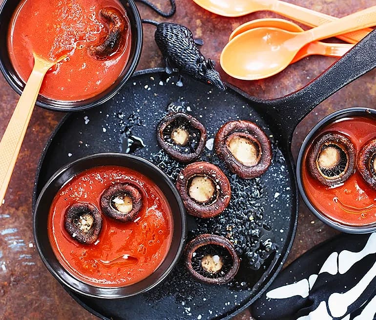 Pumpasoppa med vitlöksstekt svamp och mandel