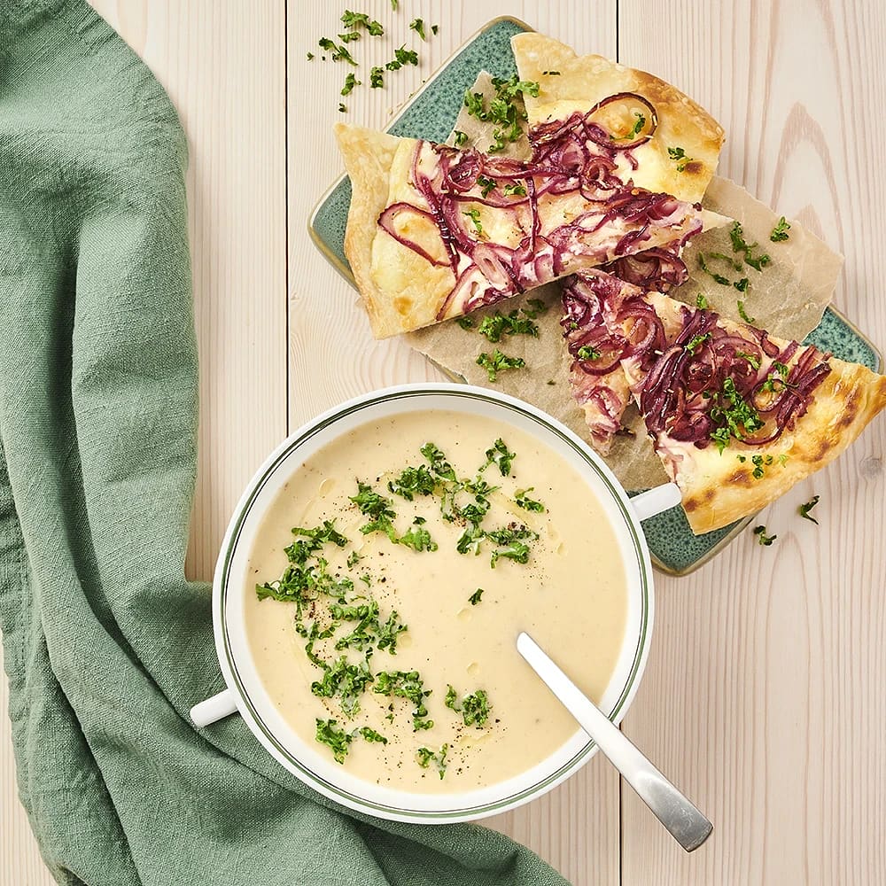 Wictorias vegetariska shabbes-soppa med basilikakräm
