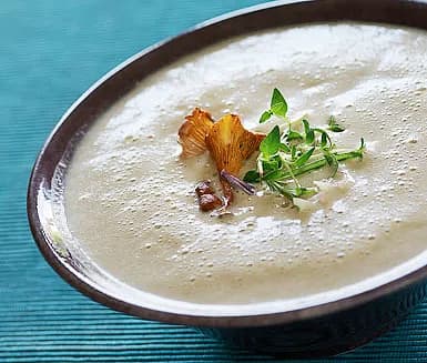Jordärtskockssoppa med äpple och trattkantareller
