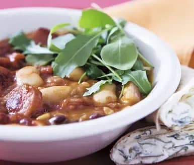 Chorizosoppa med ört- och vitlökstortilla
