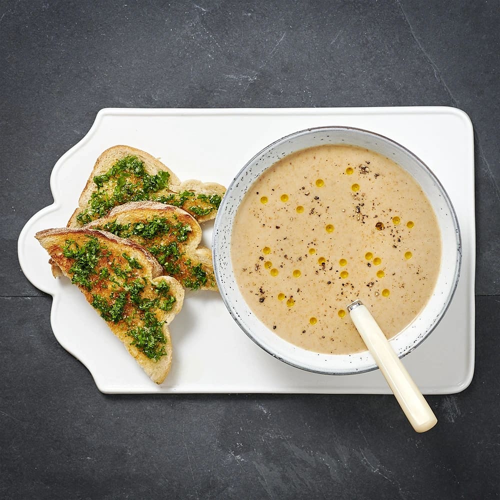 Krämig blomkålssoppa med skogsvamp och tryffelolja