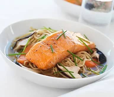 Mangoglacerad lax med citrongräsbuljong och shiitakesvamp