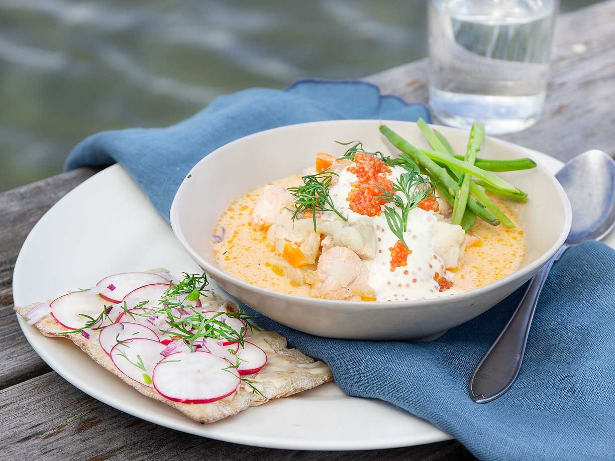 Lyxig laxsoppa med vin och grädde