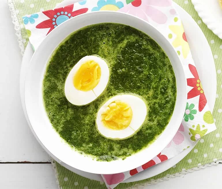 Pigg spenatsoppa med ägghalvor